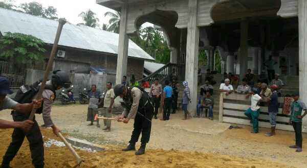 Kapolres Lhokseumawe AKBP Ari Lasta Irawan, S.Ik melalui Kasat Sabhara Iptu Sofyanto menyebutkan, kegiatan tersebut dilakukan bersama warga setempat untuk mpelebaran halaman mesjid Al-Ikhlas.