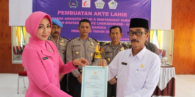 Tribrata News, Lhokseumawe- Kadis Dukcapil Lhokseumawe, Taufik, S. Sos, MSP mengapresiasi Bhayangkari Lhokseumawe yang mendorong kesadaran hak sipil anak dengan memfasilitasi pembuatan serta akan membagikan 50 akta kelahiran anak warga kurang mampu dan keluarga anggota Polri di Lhoseumawe. Karena dalam hal ini hak sipil untuk anak-anak agar segera terpenuhi.