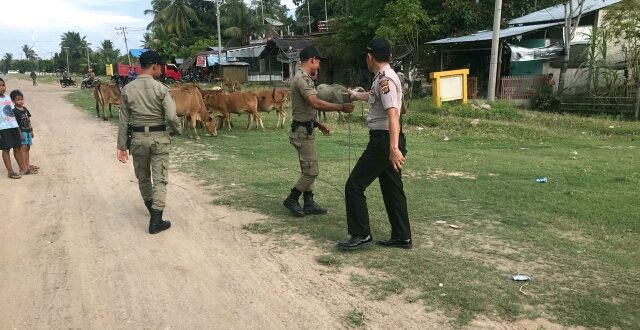 Tribrata News, Lhokseumawe-polres Kepolisian Resor Lhokseumawe Sektor Meurah Mulia bersama Satpol-PP setempat imbau warga tidak melepaskan hewan ternak sapi dan kambing di Kawasan Jalan Line Kecamatan Meurah Mulia Kabupaten Aceh Utara.”Rabu (12/09/2018) sore
