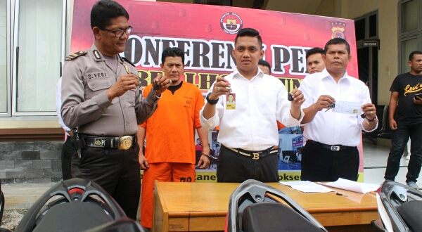 Ia menjelaskan, setelah adanya laporan korban pihaknya langsung melakukan penyelidikan sehingga pada tanggal 29 agustus 2018 kedua tersangka berhasil ditangkap dan setelah dikembangkan diketahui kedua tersangka beberapa kali melakukan penarikan terhadap unit sepeda motor yang menunggak kredit.