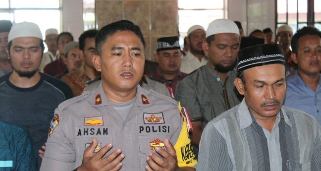 Tribrata News, Lhokseumawe – Sebagai wujud keprihatinan dan rasa duka cita terhadap korban gempa dan tsunami di Palu dan Donggala yang mengakibatkan ribuan orang meninggal dunia dan mengungsi serta kehilangan tempat tinggal, Polres Lhokseumawe menggelar shalat Gaib di Mesjid Babuttaqwa Polres Lhokseumawe, Jum’at (5/10/2018).