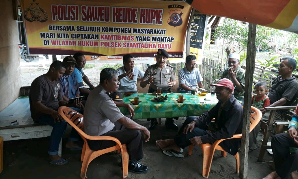 Himbauan tersebut disampaikan saat ngopi bareng bersama tokoh masyarakat setempat. Tampak Waka Polsek Syamtalira Bayu Ipda M.Yunus bersama Kanit Binmas Aiptu T.Saiful Bahri berbincang santai denga sejumlah tokoh masyarakat sambil menikmati secangkir kopi disalah satu warung kopi di kawasan Desa Baroh Blang Rimueng Kec. Syamtalira Bayu Kab. Aceh Utara, Jum’at (12’10/2018) pagi