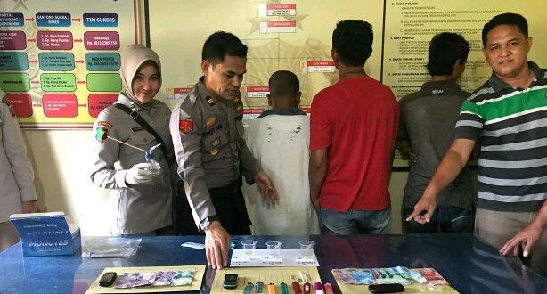 Tribrata News, Lhokseumawe-Kepolisian Resor Lhokseumawe Sektor Meurah Mulia berhasil melakukan penangkapan terhadap tiga orang pelaku terduga penjual, pembeli dan pengguna Narkotika jenis sabu di Desa Nibong Kec Meurah Mulia Kabupaten Aceh Utara, Rabu (24/10/2018) pukul 13.00 Wib.