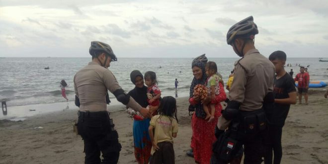 Tribrata News, Lhokseumawe -Team URC Sat Sabhara Polres Lhokseumawe Melaksanakan Patroli Sepeda Rutin di lokasi Wisata Desa Ujong Blang Kecamatan Banda Sakti Kota Lhokseumawe.” Minggu (11/11/2018) Pukul 16.00 Wib