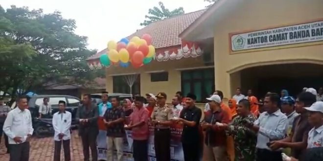 Tribrata News, Lhokseumawe – Pelepasan burung merpati dan balon warnai deklarasi damai, aman dan sejuk yang berlangsung di halaman kantor Camat Banda Baro Kabupaten Aceh Utara.’ rabu (21/11/2018) siang.