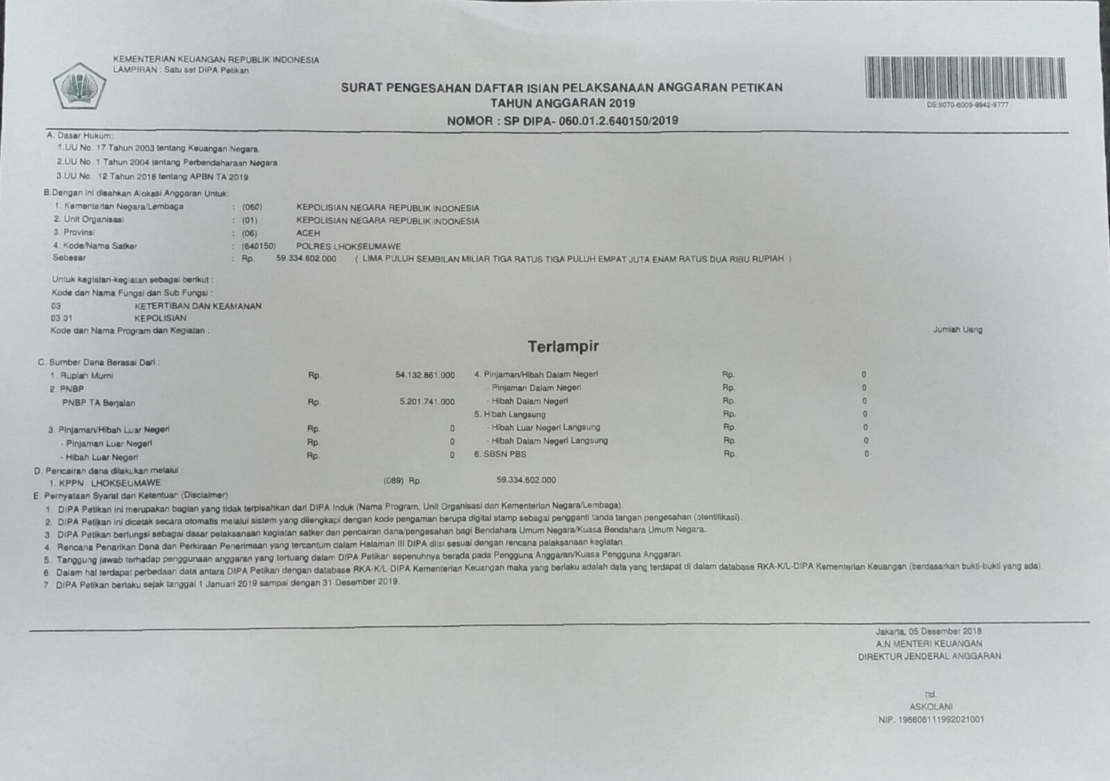 Dipa Polres Lhokseumawe Tahun 2019