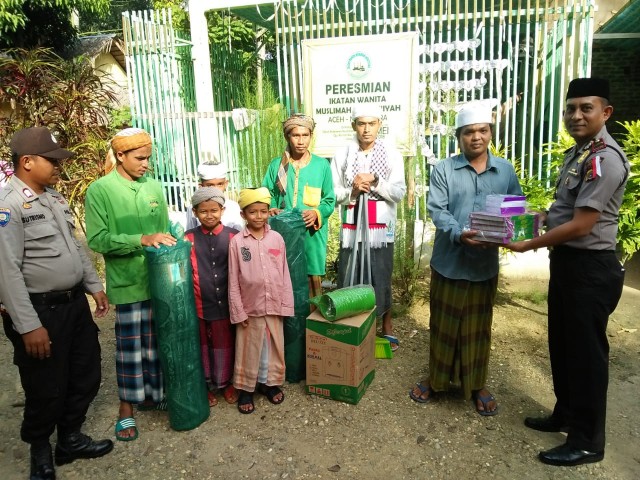 Tampak dalam silaturrahmi tersebut Kapolsek Blang Mangat turut menyerahkan bantuan berupa ambal sajadah, dispenser, al-quran, yasin, sapu dan gayung mandi.