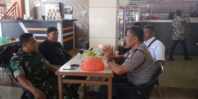 Tribrata News, Lhokseumawe- Kapolsek Muara Satu AKP Ahmad Yani bersama Danramil setempat coffe morning dengan sejumlah Kepala Desa melakukan dialog kamtibmas di salah satu warung kopi di kawasan Desa Batu Phat Kec. Muara Satu, Kota Lhokseumawe, Kamis (14/01/2019) pagi.