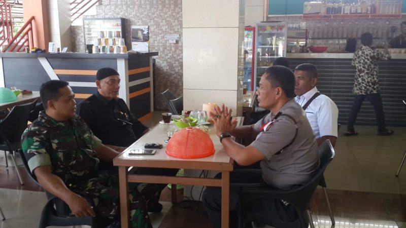 Tribrata News, Lhokseumawe- Kapolsek Muara Satu AKP Ahmad Yani bersama Danramil setempat coffe morning dengan sejumlah Kepala Desa melakukan dialog kamtibmas di salah satu warung kopi di kawasan Desa Batu Phat Kec. Muara Satu, Kota Lhokseumawe, Kamis (14/01/2019) pagi.