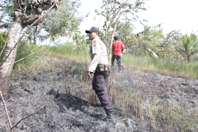 Tribrata News, Lhokseumawe – Polisi bantu pemadaman padang rumput ilalang yang terbakar di kawasan perbukitan Dusun Seumatang Desa Padang Sakti berbatasan bukit Desa Meuria paloh Kec.Muara satu Kota Lhokseumawe.” rabu (02/01/2019) pukul 13.30 Wib.