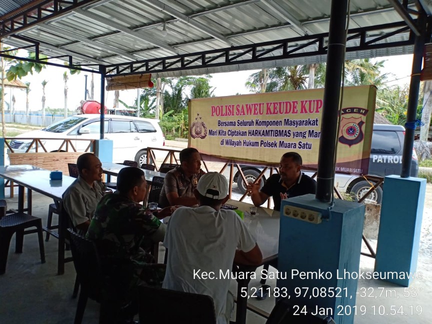 Tribrata News,Lhokseumawe – Jajaran Polsek Muara Satu Polres Lhokseumawe kembali melanjutkan program Saweu Keude Kupi di salah satu Warung Kopi di jalan Banda Aceh-Medan Dusun Delima Desa Meuria Paloh Kec. Muara Satu, Kamis (24/01/2019) pagi.