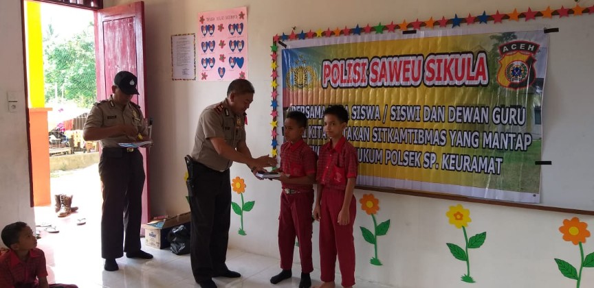 Kapolres Lhokseumawe AKBP Ari Lasta Irawan, S.Ik melalui Kapolsek Simpang Kramat Iptu Azis menyebutkan, benar kami membegikan buku dan pulpen bagi murid-murid yang bisa menjawab beberapa pertanyaan yang diajukan.