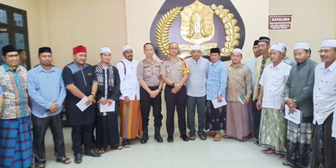 Tribrata News,Lhokseumawe – Kapolres Lhokseumawe bersama Kapolres Aceh Utara sambut sejumlah tokoh agama di Mapolres Lhokseumawe dalam rangka dengar pendapat dan saran terkait dugaan penghinaan dan penistaan terhadap ulama Aceh yang viral di media sosial.