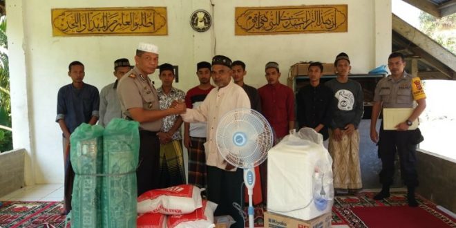 Dalam kunjungan tersebut Kapolsek juga menyerahkan bantuan berupa Kipas angin, Dispenser, ambal/sajadah panjang, tikar dan Beras. Bantuan itu diserahkan langsung kepada Pimpinan Dayah Babul Rahmah An. Tgk.Ridwan A, SH.