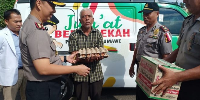 Hadirnya mobil Jum’at bersedekah ini juga sebagai wujud kepedulian Polisiterhadap masyarakat.”pungkasnya
