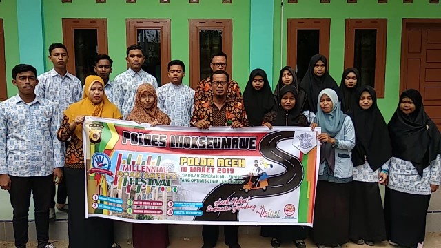 Tribrata News, Lhokseumawe – Pelajar dan Dewan Guru MAS Jabalnur Dukung Milennial Road Sefety Festival tahun 2019