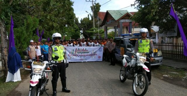 Tribrata News,Lhokseumawe – Polres Lhokseumawe mengerahkan polisi untuk mengawal pergelaran Maraton 5 Km yang di selenggaralan oleh Baitulmaal Muamalat di Lapangan Hiraq Desa Simpang Empat Kecamatan Banda Sakti Kota Lhokseumawe.” Minggu (17/02/2019)
