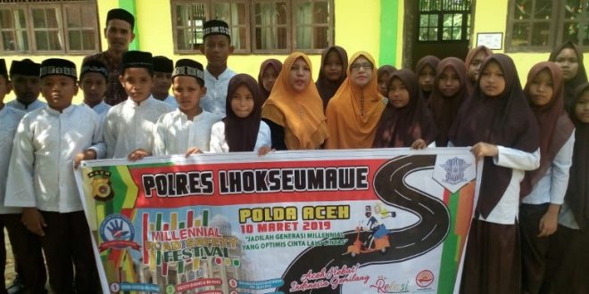 Tribrata News,Lhokseumawe – Jajaran Polsek Syamtalira Bayu melakukan Sosialisasi Millennial Road Sefety Festival (MRSF) kepasa pelajar MIN 26 di Desa Beunot Kecamatan Syamtalira Bayu Kab. Aceh Utara, Sabtu (09/02/2019) pagi.