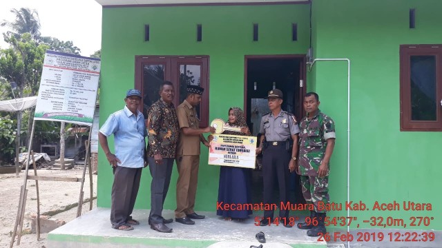 Tribrata News,Lhokseumawe – Wakapolsek Muara Batu Ipda Juwardi hadiri penyerahan lima unit Rumah layak huni kepada warga Fakir Miskin dalam Kecamatan Muara Batu Kab.Aceh Utara, selasa (26/02/2019).
