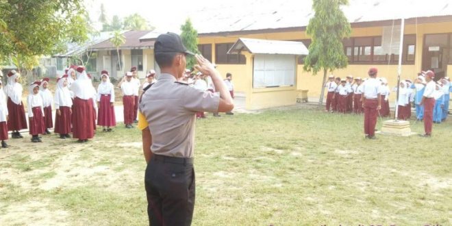 Tribrata News, Lhokseumawe – Bhabinkamtibmas Polsek Meurah Mulia Bripka Hamzaya melakukan saweu sikula serta memimpin upacara bendera mingguan di SD N 11 Meurah Mulia, Kec. Meurah Mulia, Kab. Aceh Utara, senin (18/03/2019).