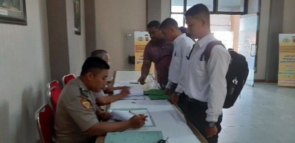 Tampak sejumlah pelajar melakukan proses verifikasi berkas terhadap tim pendaftaran penerimaan Polri di Polres Lhokseumawe.
