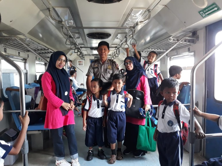 Selain mengenalkan dunia perkereta apian, siswa TK juga diedukasikan budaya antri dan tertib saat menaiki kereta api.