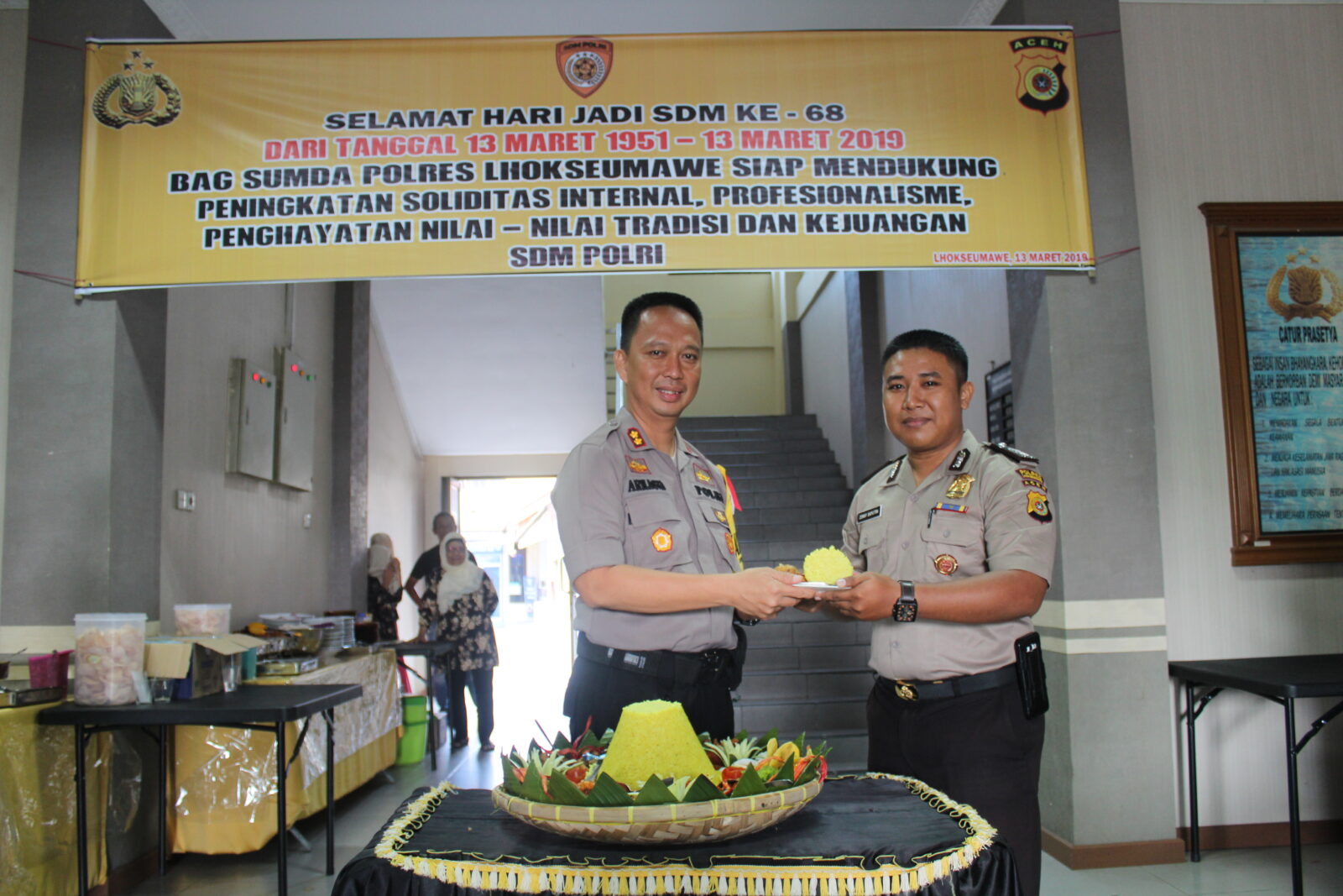 Tribrata News, Lhokseumawe – Dalam rangka menyambut HUT SDM Polri ke-68, Bag Sumda Polres Lhokseumawe menggelar acara syukuran di Mapolres Lokseumawe, Rabu (13/03/2019).