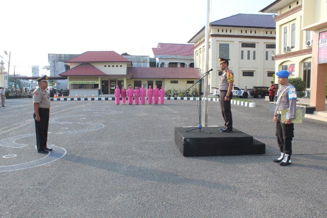 Upacara tersebut dipimpin kabag Ops Kompol Adi Sofyan, SE, MM, komandan upacara Ipda Iskandar serta dihadiri oleh jajaran perwira, Brigadir Polres Lhokseumawe serta satu peserta yang naik pangkat dari Aipda ke Ipda an. Ipda Hamdani Bin Amat.