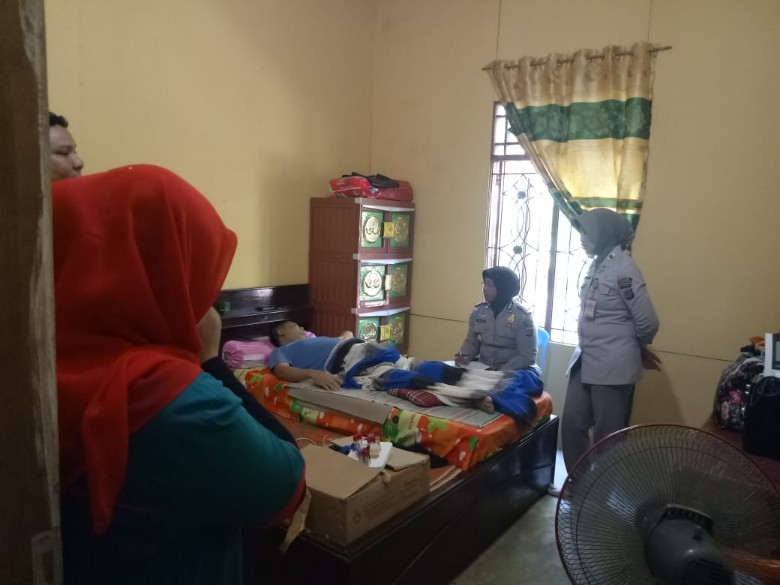 Tribrata News, Lhokseumawe – Tim Kesehatan (Biddokes) Polda Aceh didampingu Urkes Polres Lhokseumawe kunjungi Bripka Nuril Hadi di kediamannya yang terletak di