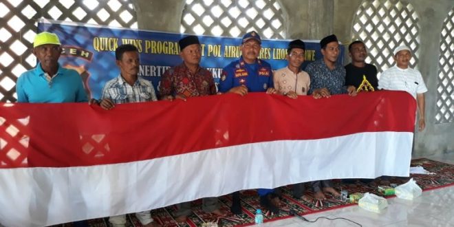 Selain memberikan penyuluhan pihaknya juga memberikan sembako, Lifebuoy atau Life jaket, teks Pancasila dan bendera merah putih untuk kelompok nelayan setempat.