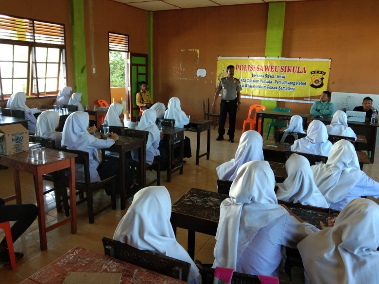 Kapolsek Samudera Iptu Bakhtiar melakukan kunjungan di SMP Uswatun Hasanah di jalan Blang Mee Desa Blang Nibong, Kecamatan Samudera Kabupaten Aceh Utara.” Selasa (02/04/2019).