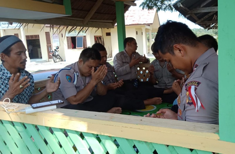 Tribrata News, Lhokseumawe – Polsek Simpang Kramat gelar doa bersama dengan sejumlah personil yang terlibat dalam pengamanan TPS di balai pengajian Mapolsek Simpang Kramat, Selasa (16/04/2019) pukul 13.30 Wib.