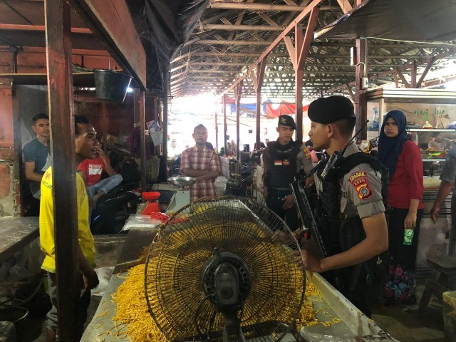 Tribrata News,Lhokseumawe – Anggota Satuan Sabahar Polres Lhokseumawe melaksanakan patroli di Pasar Tradisional, Kecamatan Banda Sakti, Kota Lhokseumawe selasa (02/03/2019) pagi.