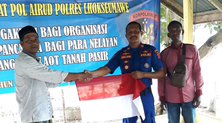 Setelah sosialisasi pihaknya juga memberikan sembako, Lifebuoy atau Life jaket, teks Pancasila dan bendera merah putih untuk kelompok nelayan setempat.