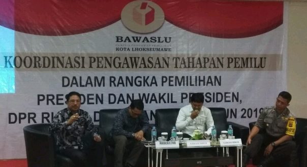 Tribrata News,Lhokseumawe – Kapolres Lhokseumawe AKBP Ari Lasta Irawan, S.Ik diwakili Waka Polres Lhokseumawe Kompol Mughi Prasetyo Habrianto, S.Ik hadiri rapat koordinasi pengawasan tahapan pemilu 2019 yang diselenggarakan oleh Panwaslih Kota Lhokseumawe di aula Hotel Harun Square desa simpang empat Kec. Banda Sakti Kota Lhokseumawe, sabtu (13/04/2019) pagi.