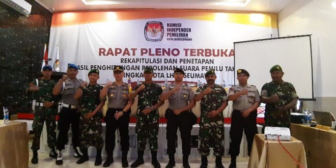 Tribrata News, Lhokseumawe – Kapolres Lhokseumawe AKBP Ari Lasta Irawan, S.Ik dan Dandim 0103/Aceh Utara Letkol Inf Agung Sukoco SH, memimpin langsung pengamanan pelaksanaan rapat pleno terbuka rekapitulasi dan penetapan perolehan suara pemilu 2019 oleh KIP Lhokseumawe yang berlangsung di Ballroom Hotel Rajawali Kota Lhokseumawe, Jum’at (03/05/2019) pagi.