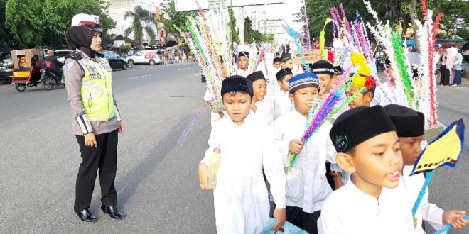 Tribrata News, Lhokseumawe – Polisi kawal ribuan santri Almarkazul Islami Islamic centre melakukan pawai keliling dalam rangka menyambut bulan suci Ramadhan 1440 H/2019 M di Kota Lhokseumawe,” sabtu (4/5/2019) sore.