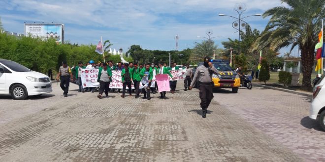 Tribrata news, Lhokseumawe – Polres Lhokseumawe kawal aksi damai mahasiswa fakultas hukum universitas malikussaleh dalam rangka memperingati hari Buruh Internasional (May Day), aksi tersebut diawali dengan turun kejalan dari depan islamic centre berjalan kaki menuju tugu rencong simpang Kuta blang dan berlanjut menuju simpang Jeum atau Tugu BPD serta kembali berorasi dipinggir jalan depan Islamic Centre, Kec.Banda Sakti Kota Lhokseumawe.” Rabu (01 /05/2019) siang.