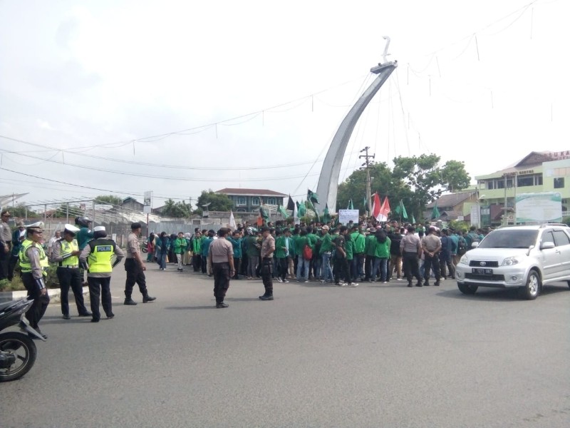 Tribrata News, Lhokseumwe – Polres Lhokseumawe kawal aksi Damai gabungan sejumlah organisasi mahasiswa yang berlangsung mulai dari Tugu rencong, taman Riyah dan Kantor DPRK Aceh Utara Kec. Banda Sakti Kota Lhokseumawe,” Kamis (23/5/ 2019) sekira pukul 14.30 WIB