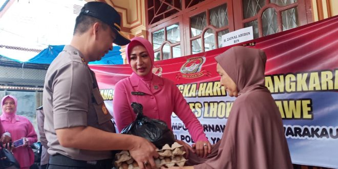 Kegiatan itu dilakukan dalam rangka Hut Bhayangkara ke 73 tahun 2019 yang juga diikuti oleh ketua Bhayangkari Ny. Rinny Ari Lasta serta pejabat utama Polres Lhokseumawe.