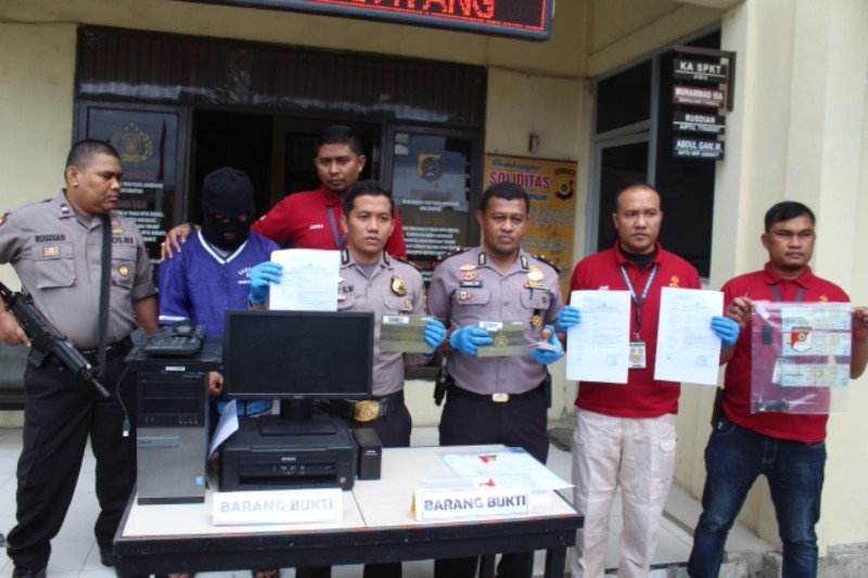 Kemudian, dia bersama tim langsung melakukan pengembangan dan berhasil menangkap pelaku dan barang bukti lainnya yang saat ini sudah disita berupa komputer, scanner, empat sepeda motor, dan surat lapor kehilangan dan stempel palsu.