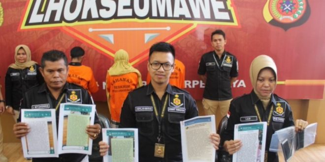 Dalam kasus tersebut Polres Lhokseumawe menetapkan tiga tersangka yakni berinisial HS (29) petani, IM (19) serta NA (21) keduangnya Mahasiswa.