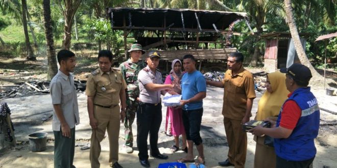 Tribrata News, Lhokseumawe- Kepala Kepolisian Resor Lhokseumawe Sektor Muara satu bersama Camat setempat kunjungi korban kebakaran dengan menyerahkan bantuan masa panik di Dsn. A. Desa Paloh Punti Kec.Muara Satu Kota Lhokseumawe, Senin 05 Agustus 2019 pukul 10.00 Wib