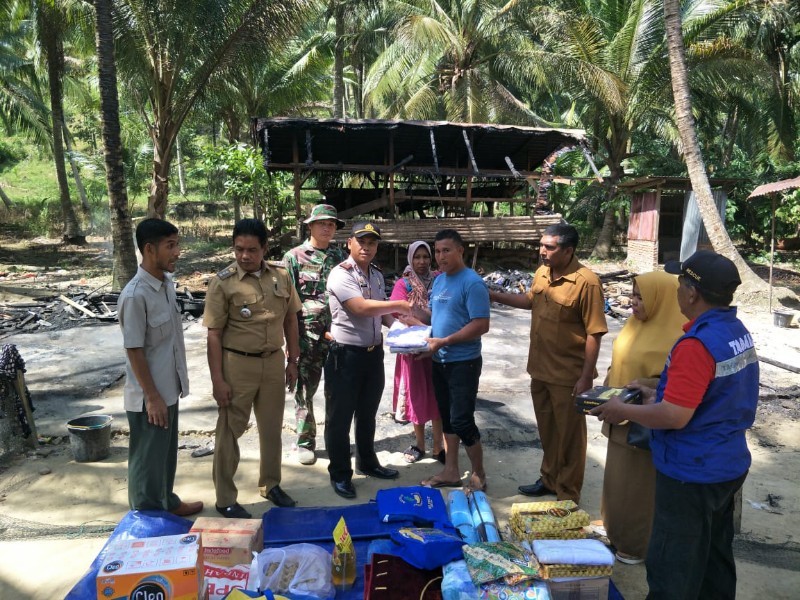 Tribrata News, Lhokseumawe- Kepala Kepolisian Resor Lhokseumawe Sektor Muara satu bersama Camat setempat kunjungi korban kebakaran dengan menyerahkan bantuan masa panik di Dsn. A. Desa Paloh Punti Kec.Muara Satu Kota Lhokseumawe, Senin 05 Agustus 2019 pukul 10.00 Wib