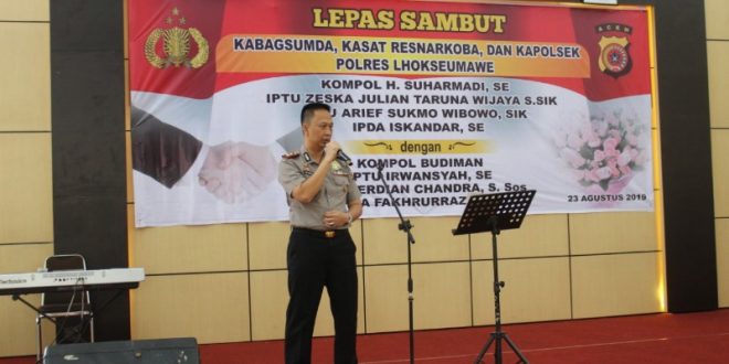 Hal tersebut disampaikan saat acara lepas sambut yang berlangsung di gedung serba guna Polres Lhokseumawe, Jumat (23/8/2019) pagi.