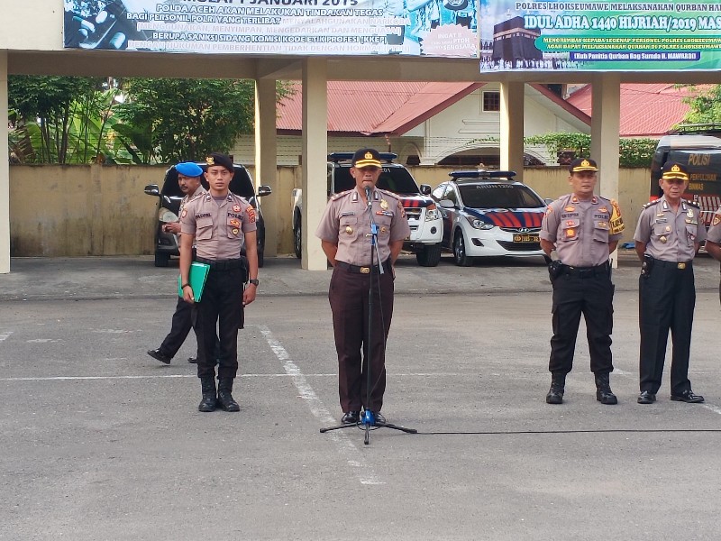 Evaluasi tersebut disampaikan langsung oleh Wakapolres Lhokseumawe saat pelaksanaan apel pagi di Mapolres Lhokseumawe, senin (05/07/2019) pagi.