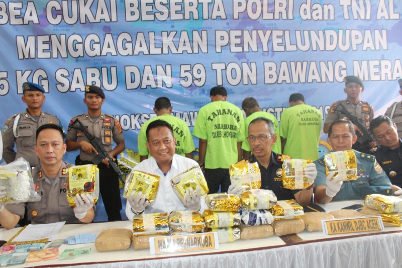 Dalam konfrensi press tersebut Wadir Res Narkoba Polda Aceh AKBP Heru Suprihasto mengatakan, keberhasilan pengungkapan kasus tersebut berawal dari pihak pengawasan dan pelayanan Bea Cukai Lhokseumawe mengamankan sebuah kapal berseta tiga anak buah kapal (ABK) yang membawa bawang merah dari Malaysia menuju perairan Indonesia Aceh, ujarnya