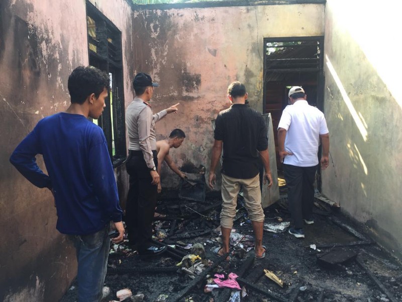 Tribrata News, Lhokseumawe – Kapolsek Blang Mangat Ipda Fakhrurrazi, S.Si tinjau lokasi kebakaran satu unit rumah di dsn. Tunong Gampong Baloi Kec. Blang Mangat Kota Lhokseumawe, rabu (25/09/2019) sekitar pukul 14.30 Wib.