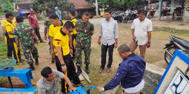 ACEH UTARA – Kapolsek Meurah Mulia IPTU Bustani, SH, MH didampingi Bhabinkamtibmas turun langsung memantau pintu air di Gampong Baroh Kuta Bate Kec. Meurah Mulia Kab. Aceh Utara, jum’at (08/11/2019) pagi.