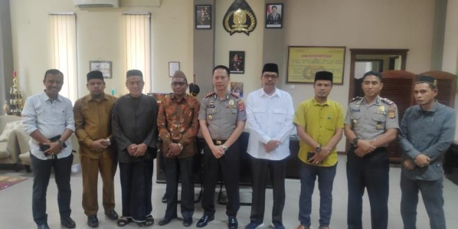 LHOKSEUMAWE- Kapolres Lhokseumawe AKBP Ari Lasta Irawan, S.Ik didampingi Wakapolres Lhokseumawe, Kompol Ahzan, S.Ik, SH, MSM menerima kunjungan komisioner Baitul Mal Lhokseumawe di Mapolres Lhokseumawe, senin (27/01/2020).